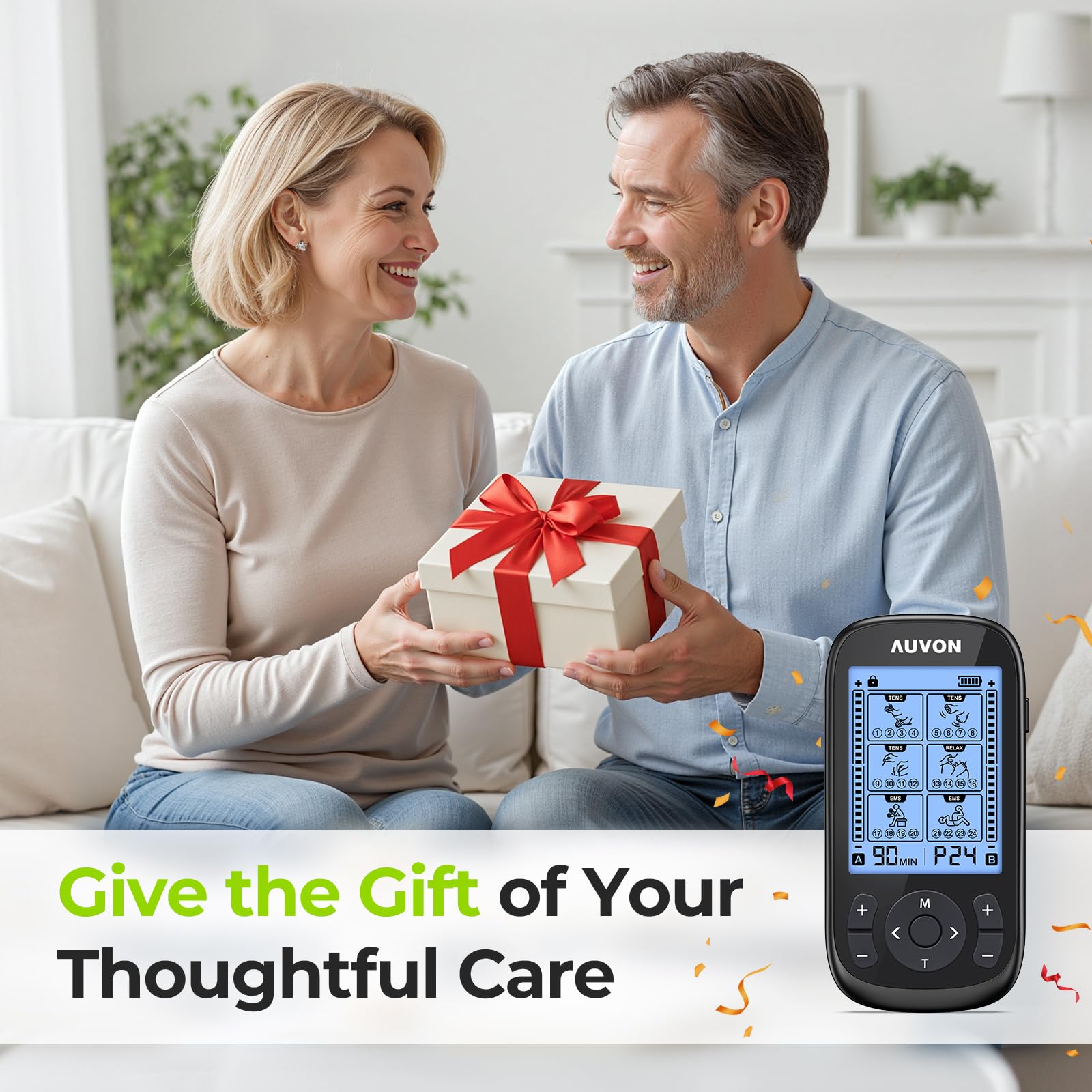 · What You Receive: 1 x Dual Channel Electrodes Muscle Stimulator, 8 x Square 2" TENS Machine Pads, 4 x Large Rectangular 2" x 4" Pads, 2 x Lead Wires, 1 x Pads Holders, 1 x Type-C Cable, 1 x User Manual, AUVON 24-month warranty support, and friendly customer service