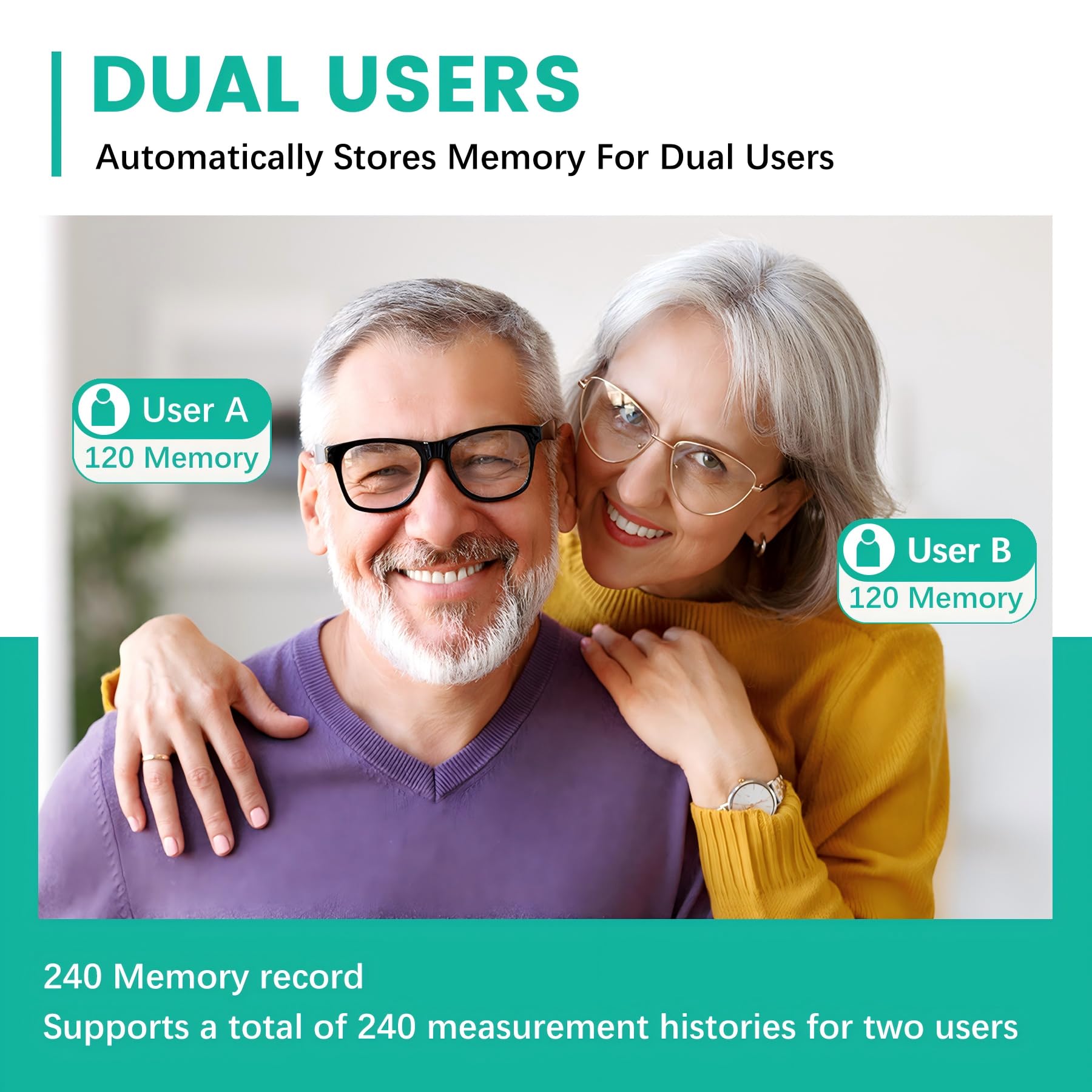 Stores up to 240 readings: Supports two users, storing 120 readings per user; This feature makes it easy to record and monitor blood pressure trends for you and your family over time