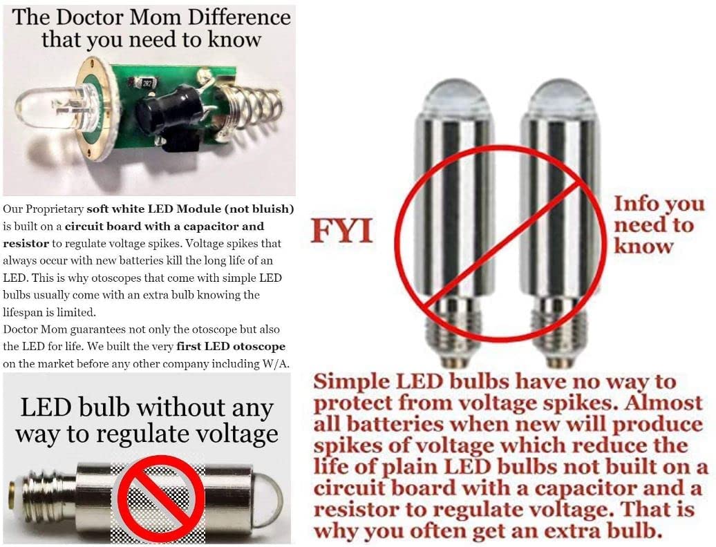 · READY & RELIABLE: Be Fully Prepared for Your Kids’ Ear Emergencies with the Third Generation Dr Mom LED Otoscope! Not All Otoscopes Are Created Equal - Be Sure to Choose Wisely. Designed by an experienced ER physician, the Third Generation Doctor Mom LED Otoscope combines superior quality and functionality.