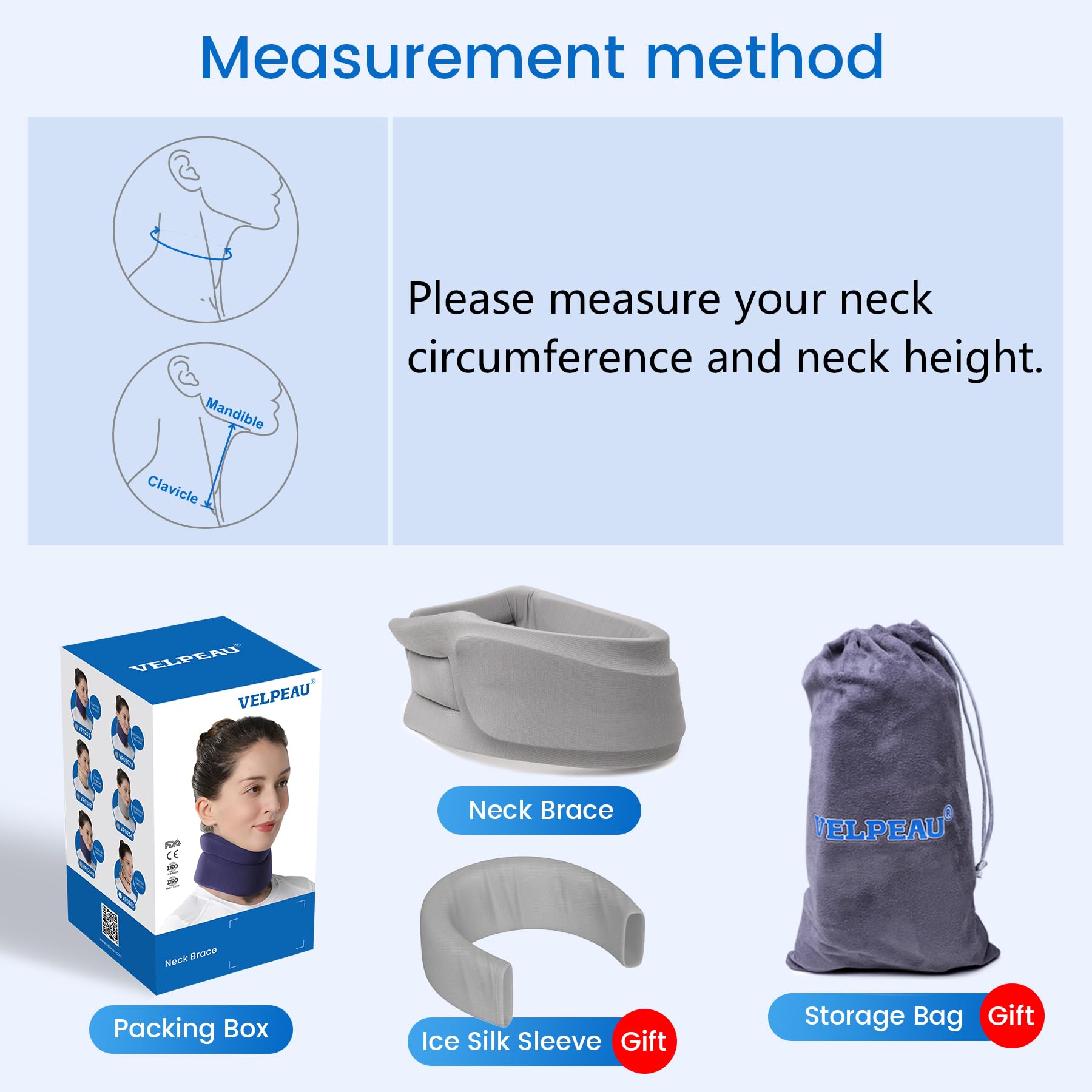 · 【More Options】This neck brace stands apart from VELPEAU's Comfort, Dual-purpose, and Enhanced versions by offering stronger and more stable support. Note: The size range for this version varies from other models, and for the same neck circumference, two neck height options are available. Please carefully measure both your neck circumference and neck height before purchasing, and refer to the size chart to select the appropriate size.